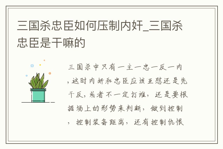 三國殺忠臣如何壓制內奸_三國殺忠臣是干嘛的