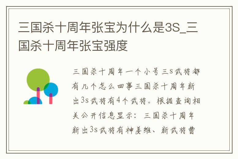 三國殺十周年張寶為什么是3S_三國殺十周年張寶強度