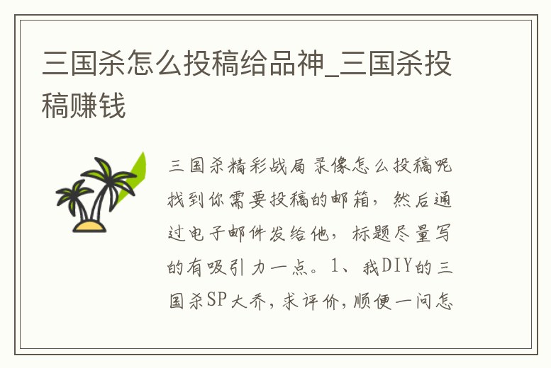 三國殺怎么投稿給品神_三國殺投稿賺錢