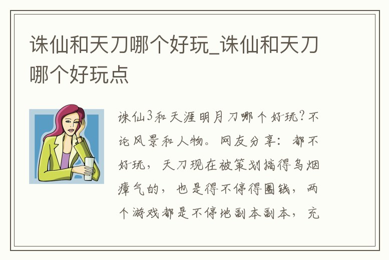網(wǎng)友分享:都不好玩,天刀現(xiàn)在被策劃搞得烏煙瘴氣的,也是得不停得圈錢,兩個游戲都是不停地副本副本,充錢充錢,完事了天刀下線,誅仙掛機(jī),玩別的游戲就行了 。