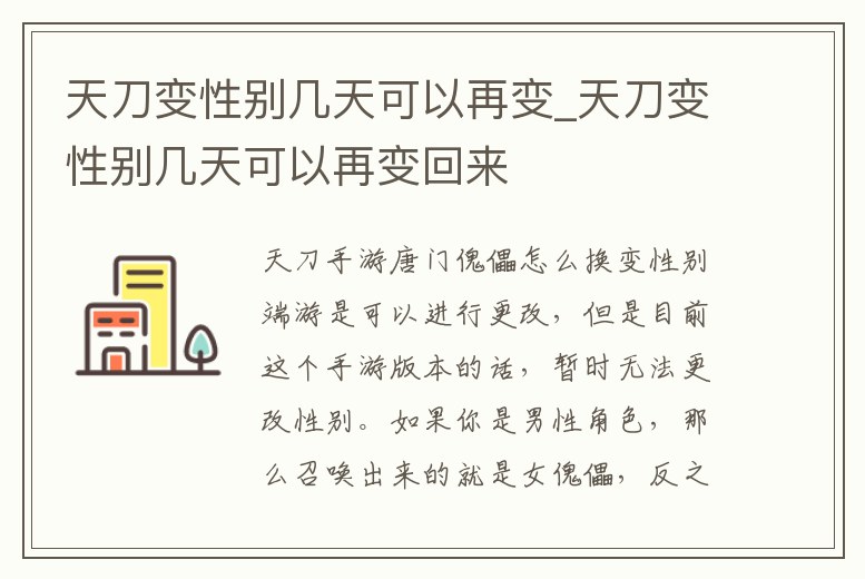 天刀變性別幾天可以再變_天刀變性別幾天可以再變回來