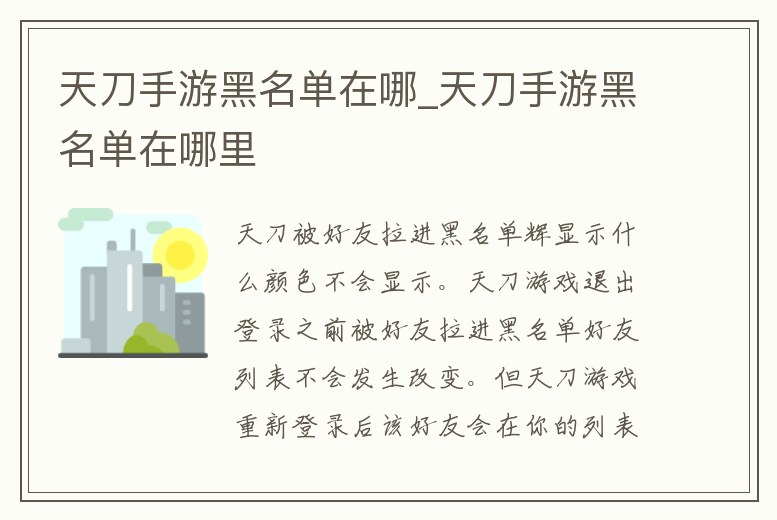 不會顯示。天刀游戲退出登錄之前被好友拉進黑名單好友列表不會發生改變。但天刀游戲重新登錄后該好友會在你的列表中完全消失不會顯示。