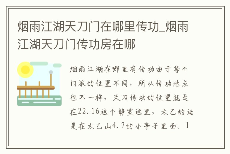 煙雨江湖天刀門在哪里傳功_煙雨江湖天刀門傳功房在哪
