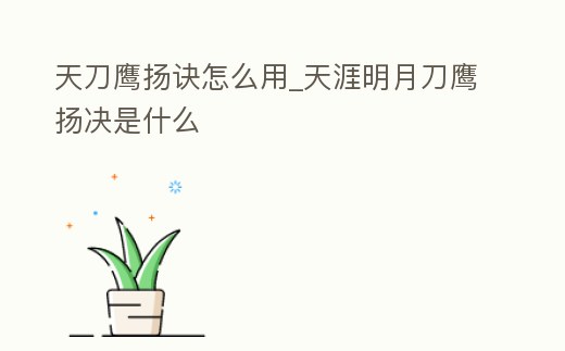 天刀鷹揚訣怎么用_天涯明月刀鷹揚決是什么