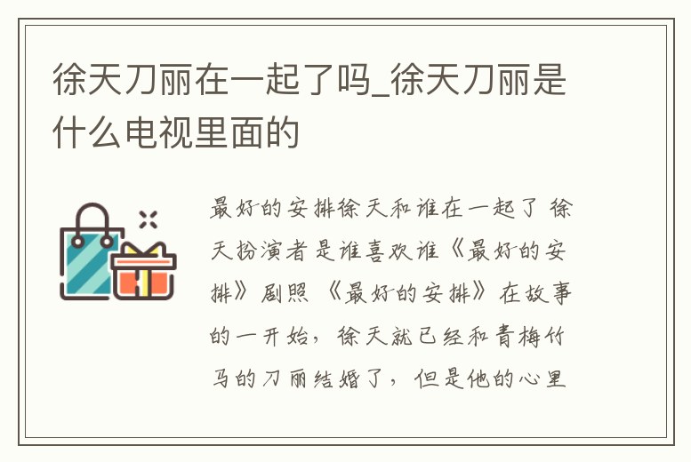 徐天刀麗在一起了嗎_徐天刀麗是什么電視里面的