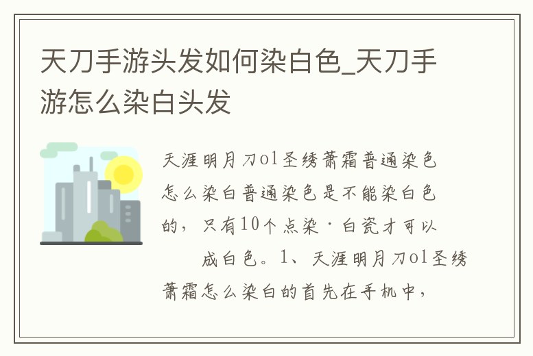 天刀手游頭發如何染白色_天刀手游怎么染白頭發