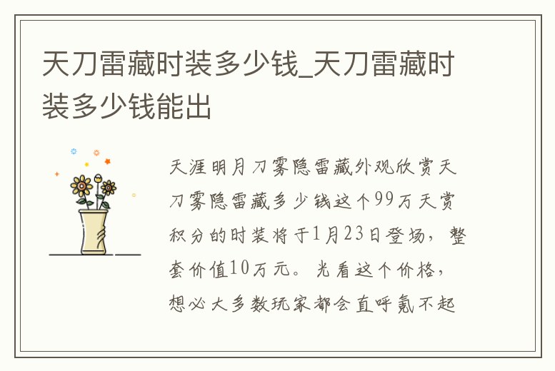 天刀雷藏時裝多少錢_天刀雷藏時裝多少錢能出
