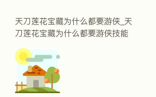 天刀蓮花寶藏為什么都要游俠_天刀蓮花寶藏為什么都要游俠技能