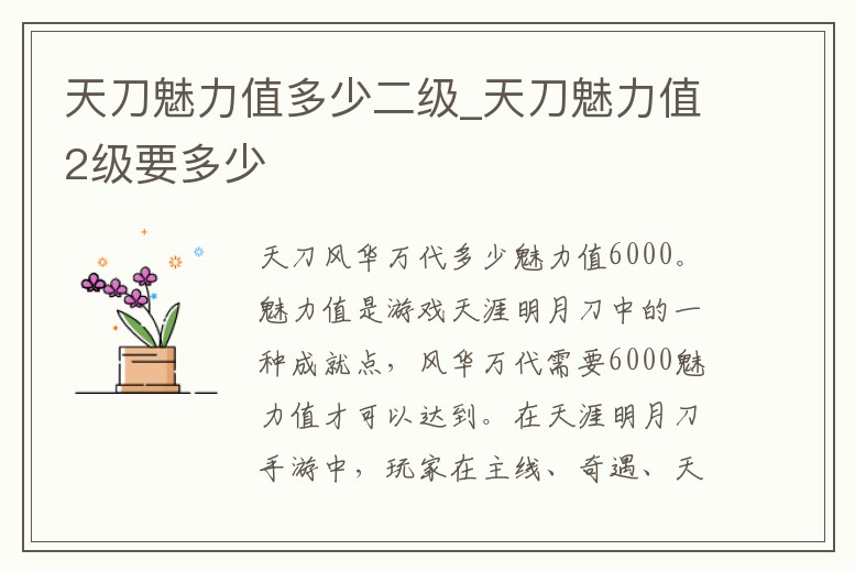 天刀魅力值多少二級_天刀魅力值2級要多少