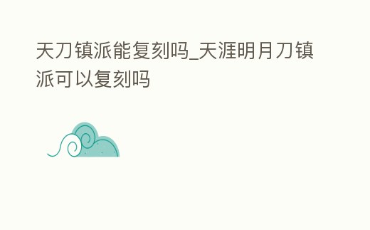 天刀鎮派能復刻嗎_天涯明月刀鎮派可以復刻嗎