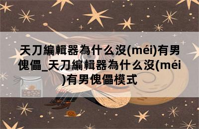 天刀編輯器為什么沒(méi)有男傀儡_天刀編輯器為什么沒(méi)有男傀儡模式