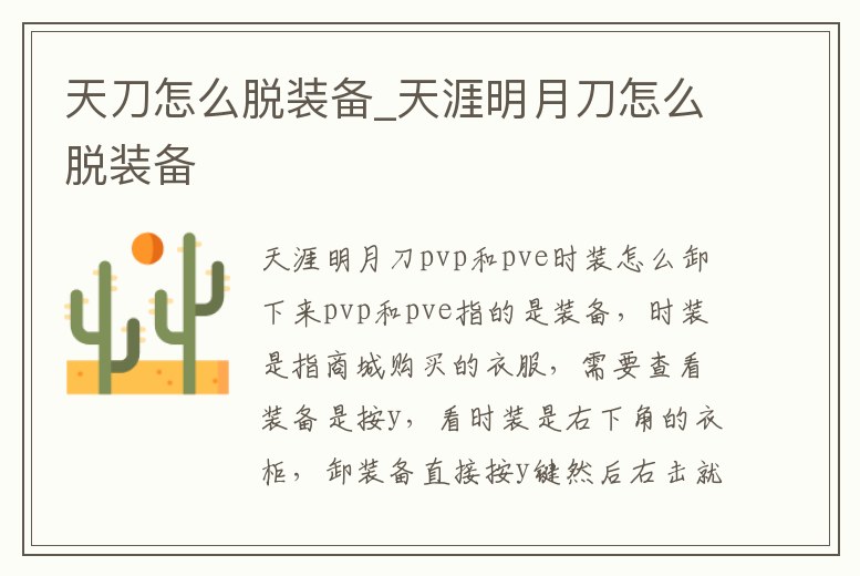 天刀怎么脫裝備_天涯明月刀怎么脫裝備