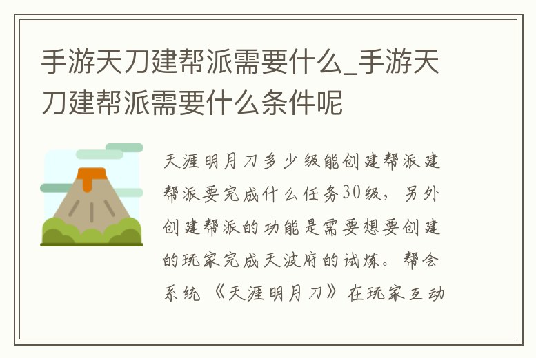 手游天刀建幫派需要什么_手游天刀建幫派需要什么條件呢