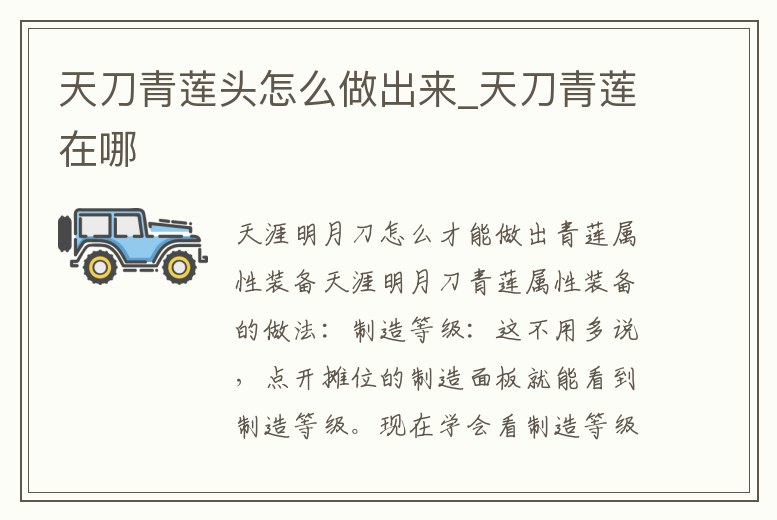 1、天涯明月刀怎么才能做出青蓮屬性裝備
