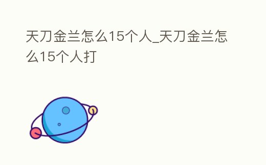 - 天刀金蘭怎么15個(gè)人_天刀金蘭怎么15個(gè)人打