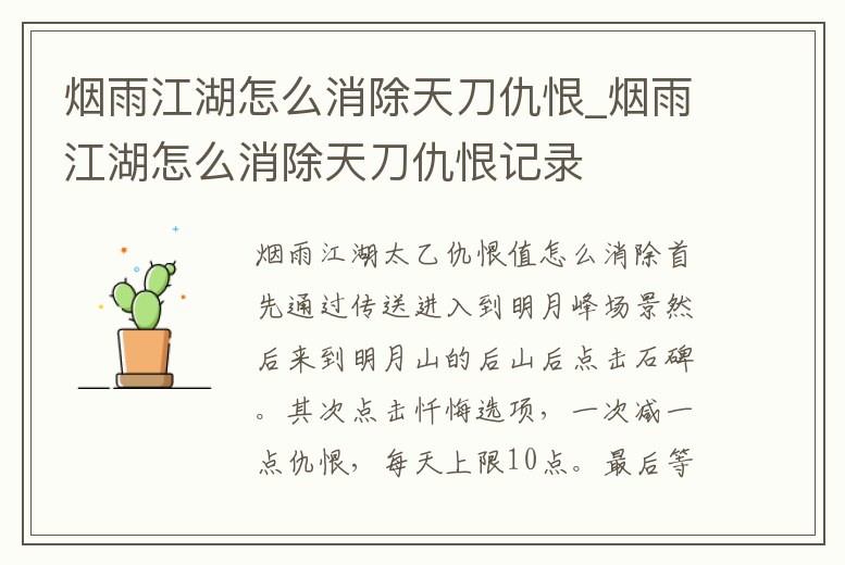 煙雨江湖怎么消除天刀仇恨_煙雨江湖怎么消除天刀仇恨記錄