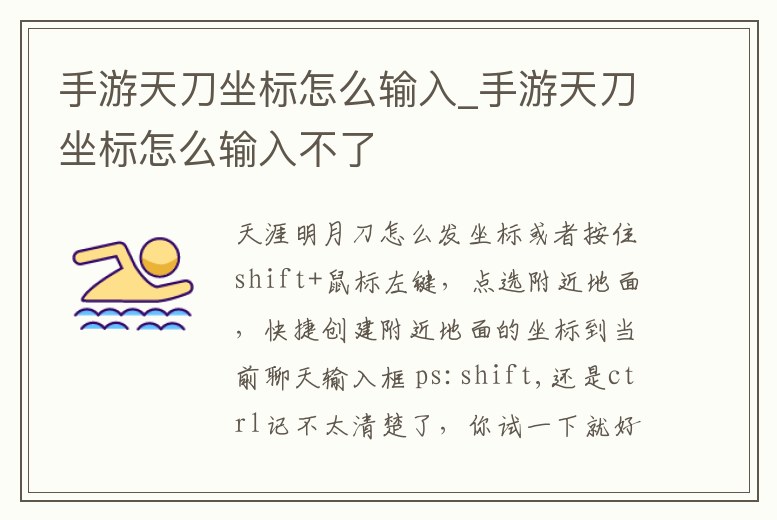 手游天刀坐標怎么輸入_手游天刀坐標怎么輸入不了