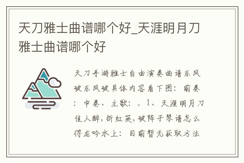 天刀雅士曲譜哪個好_天涯明月刀雅士曲譜哪個好