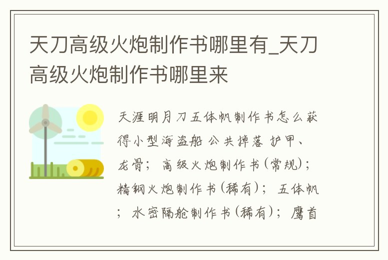 天刀高級火炮制作書哪里有_天刀高級火炮制作書哪里來