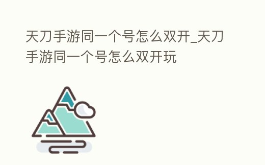 天刀手游同一個號怎么雙開_天刀手游同一個號怎么雙開玩