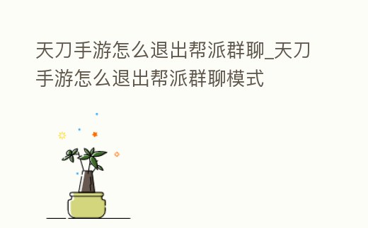 天刀手游怎么退出幫派群聊_天刀手游怎么退出幫派群聊模式
