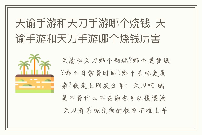 天諭和天刀哪個耐玩?哪個更費錢?哪個日常費時間?哪個系統(tǒng)更復(fù)雜?我是上