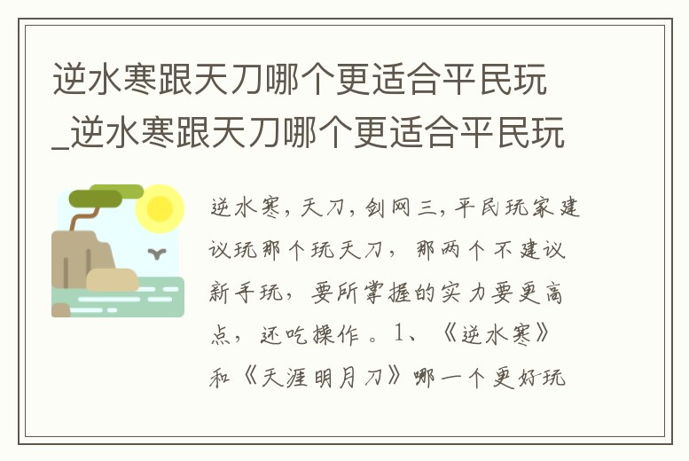 - 逆水寒跟天刀哪個(gè)更適合平民玩_逆水寒跟天刀哪個(gè)更適合平民玩