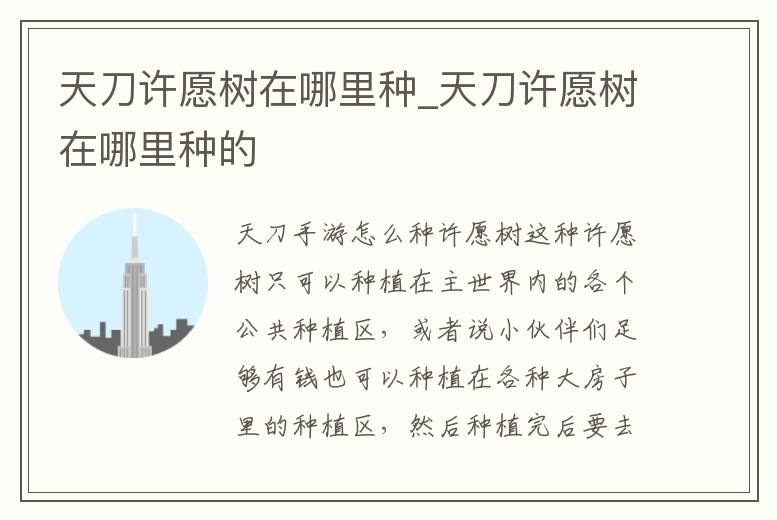 天刀許愿樹在哪里種_天刀許愿樹在哪里種的