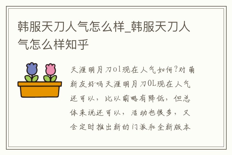 韓服天刀人氣怎么樣_韓服天刀人氣怎么樣知乎