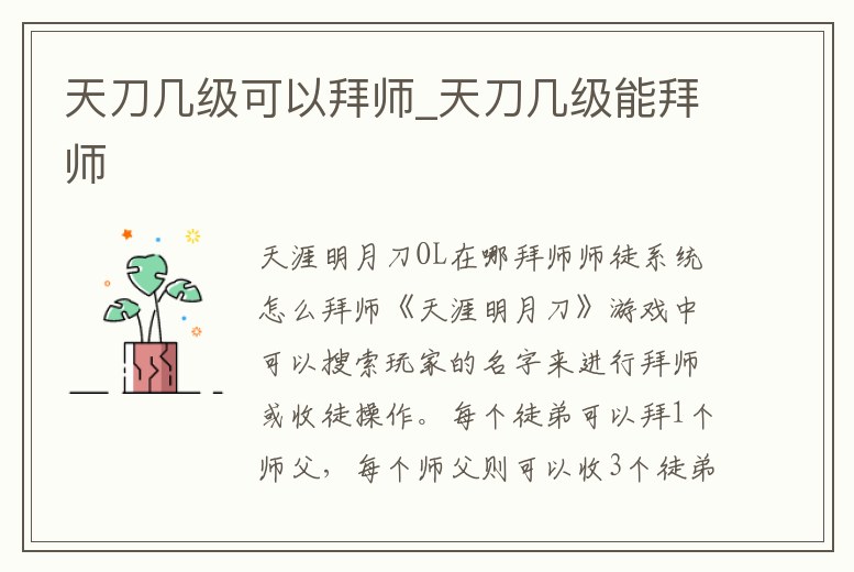 5、天涯明月刀。拜師有什么用。我做徒弟
