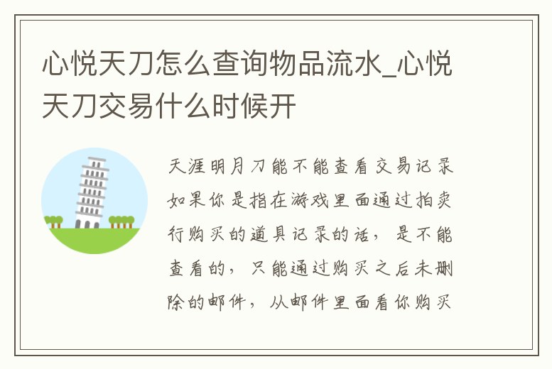 心悅天刀怎么查詢物品流水_心悅天刀交易什么時候開