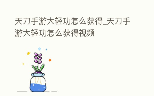 天刀手游大輕功怎么獲得_天刀手游大輕功怎么獲得視頻