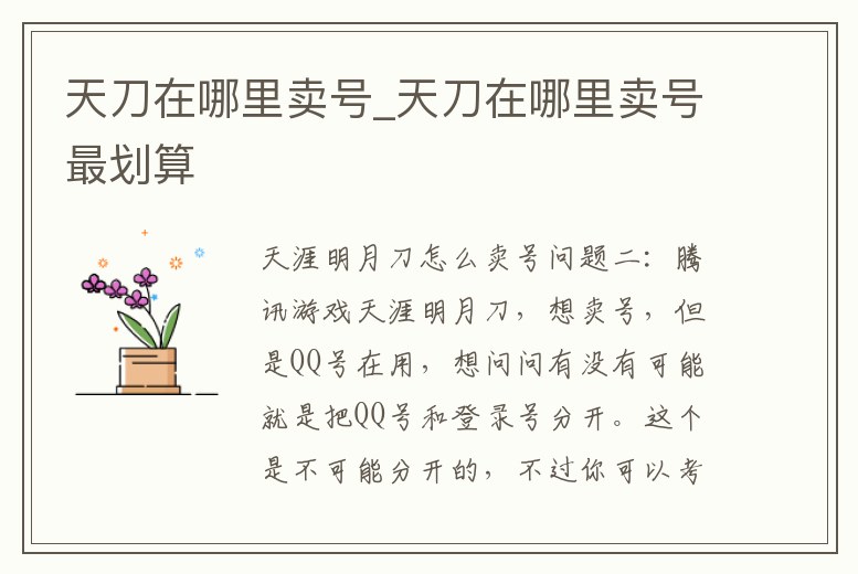 天刀在哪里賣號_天刀在哪里賣號最劃算