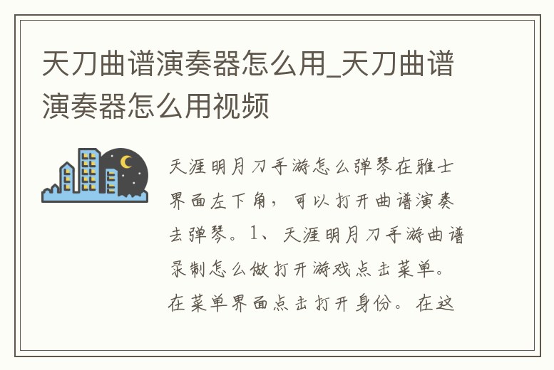 天刀曲譜演奏器怎么用_天刀曲譜演奏器怎么用視頻