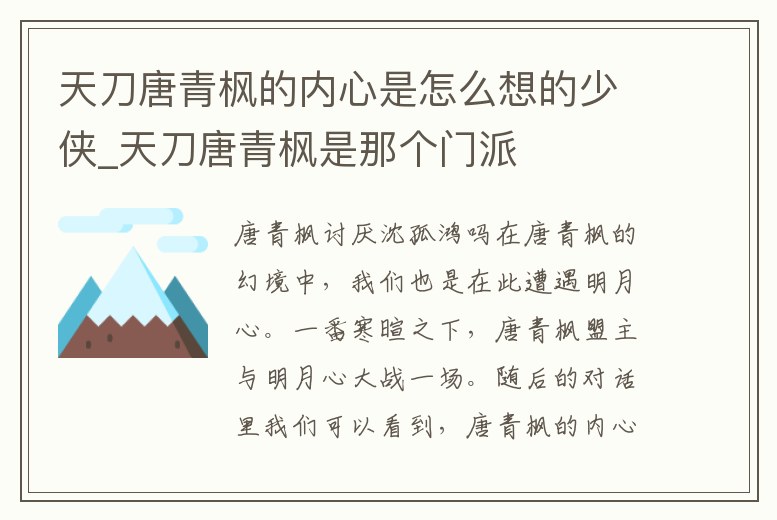 天刀唐青楓的內心是怎么想的少俠_天刀唐青楓是那個門派