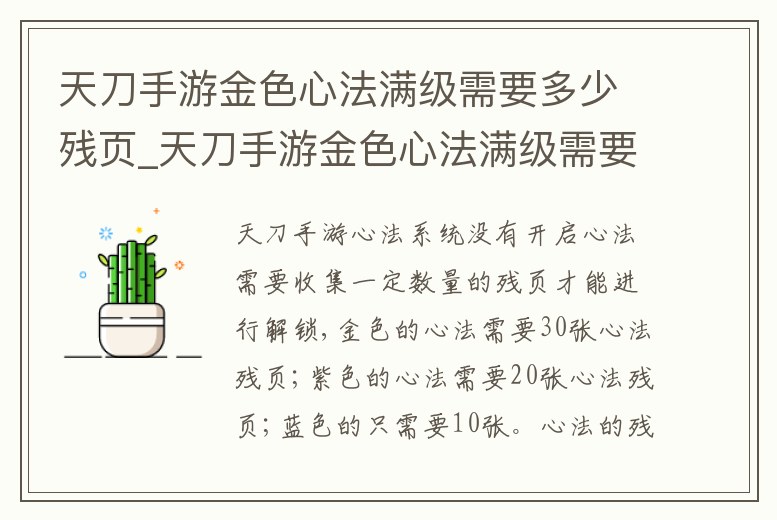 天刀手游金色心法滿級需要多少殘頁_天刀手游金色心法滿級需要多少殘頁才能用