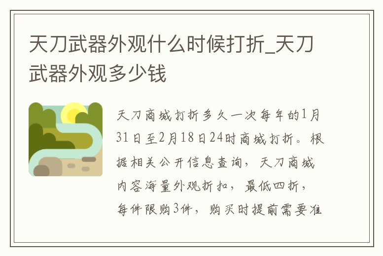 天刀武器外觀什么時候打折_天刀武器外觀多少錢