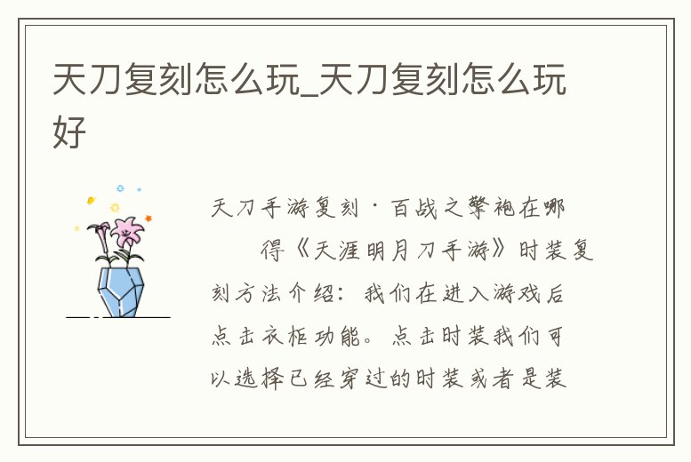 天刀復(fù)刻怎么玩_天刀復(fù)刻怎么玩好