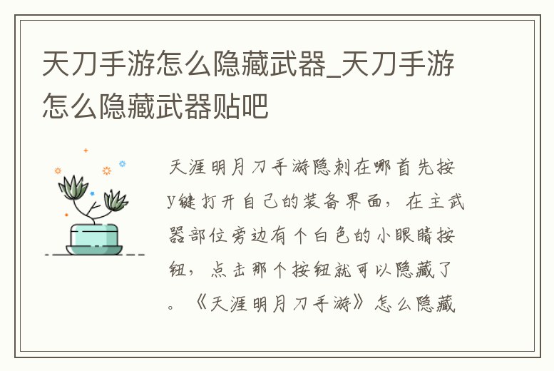 天刀手游怎么隱藏武器_天刀手游怎么隱藏武器貼吧