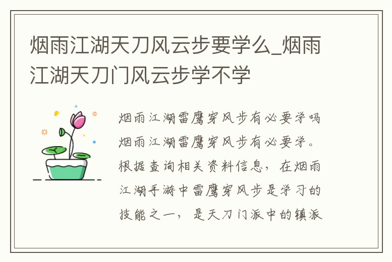 煙雨江湖天刀風云步要學么_煙雨江湖天刀門風云步學不學