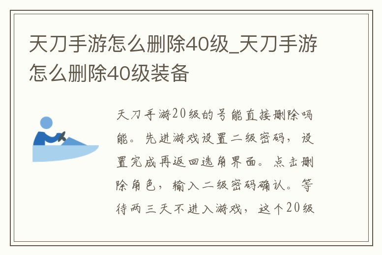 天刀手游怎么刪除40級_天刀手游怎么刪除40級裝備