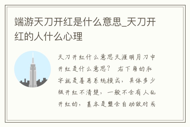 端游天刀開紅是什么意思_天刀開紅的人什么心理