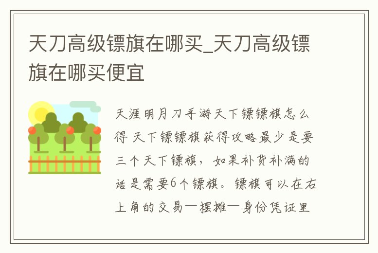 天刀高級(jí)鏢旗在哪買_天刀高級(jí)鏢旗在哪買便宜