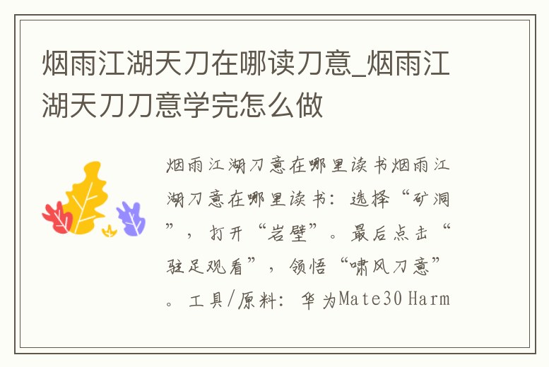 - 煙雨江湖天刀在哪讀刀意_煙雨江湖天刀刀意學(xué)完怎么做