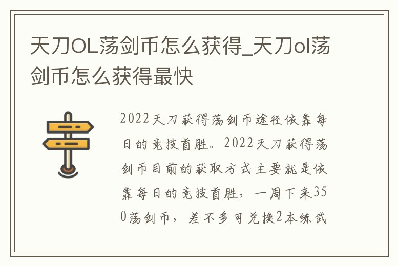2022天刀獲得蕩劍幣途徑依靠每日的競技首勝。2022天刀獲得蕩劍幣目前的獲取方式主要就是依靠每日的競技首勝,一周下來350蕩劍幣,差不多可兌換2本練武心法,再就是攢綁點直接在商店進行購買。《天涯明月刀》是騰訊北極光工作室研發的一款武俠題材的3。1、2022天刀獲得蕩劍幣途徑天刀指的是游戲《天涯明月刀》,蕩劍幣的獲取方式主要就是依靠每日的競技首勝和段位