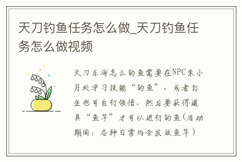 天刀釣魚任務怎么做_天刀釣魚任務怎么做視頻