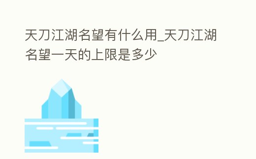 天刀江湖名望有什么用_天刀江湖名望一天的上限是多少