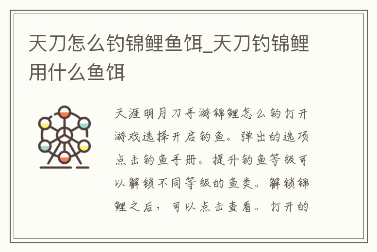 天刀怎么釣錦鯉魚餌_天刀釣錦鯉用什么魚餌