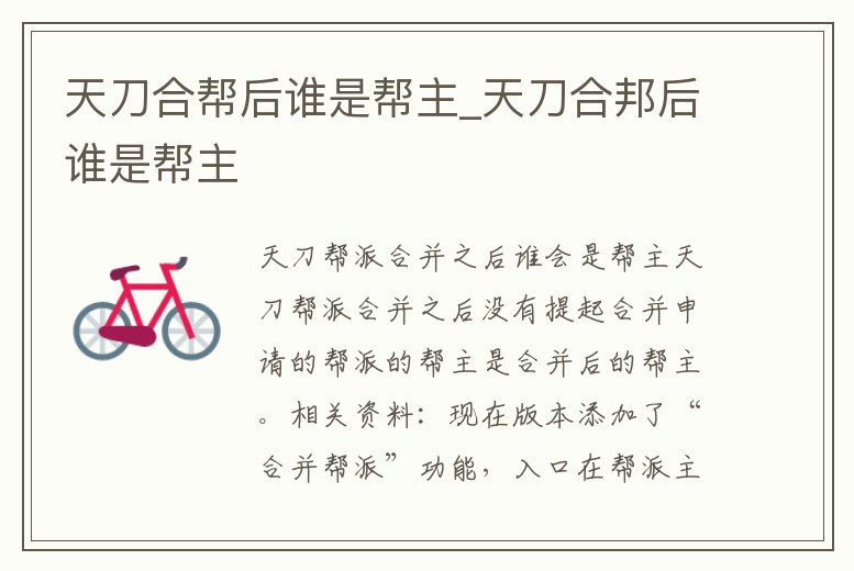 天刀合幫后誰是幫主_天刀合邦后誰是幫主