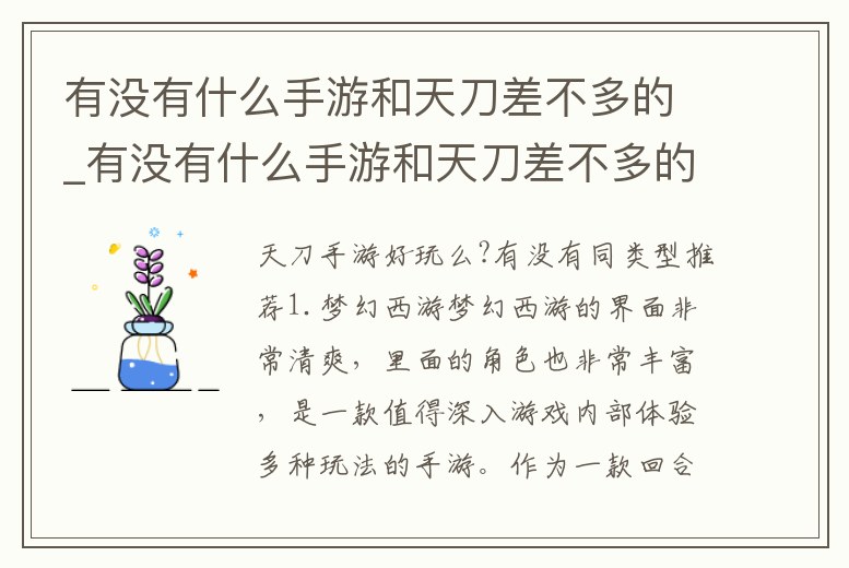 - 有沒有什么手游和天刀差不多的_有沒有什么手游和天刀差不多的手游